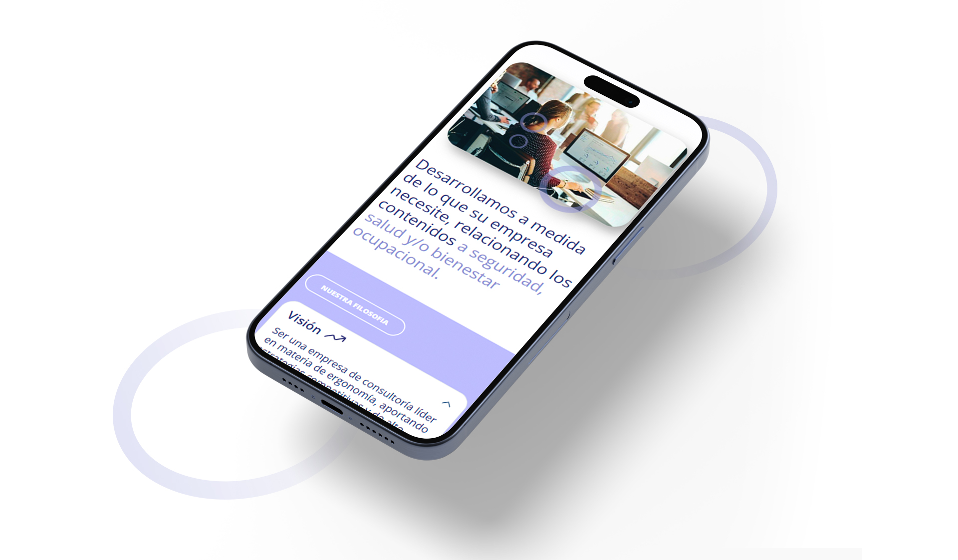 Diseñamos y desarrollamos la web de una empresa de ergonomía y bienestar laboral bajo un formato OnePage, pensado para una lectura fluida al hacer scroll. Secciones claras muestran servicios y contenidos, con un diseño limpio, eficiente y armónico, utilizando paleta en violetas pasteles e imágenes que transmiten bienestar.